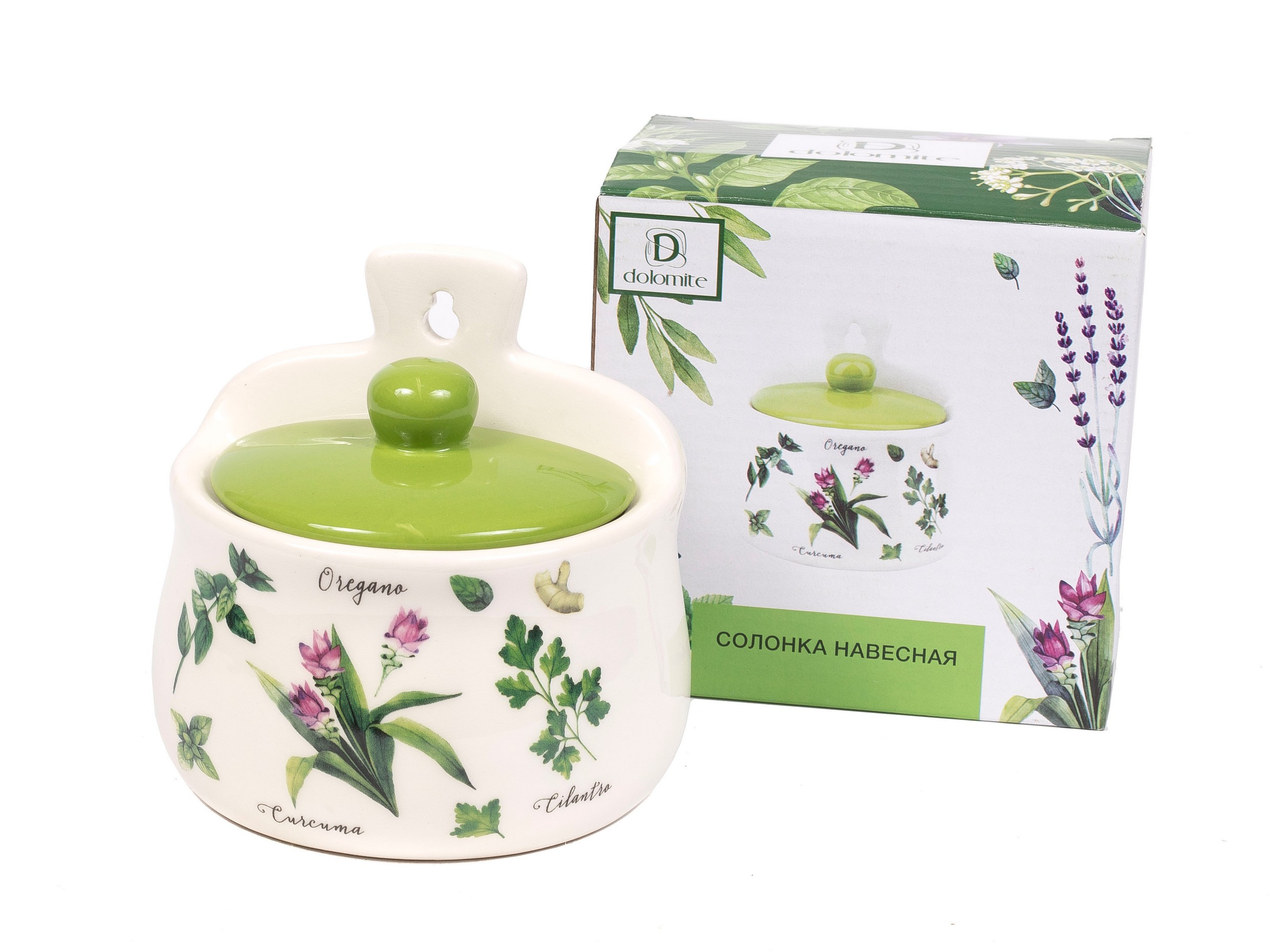 СОЛОНКА керамическая навесная “Herbal Green” 12,9*9*12,2 см/450 мл (арт. L2520934, код 227273) 101129