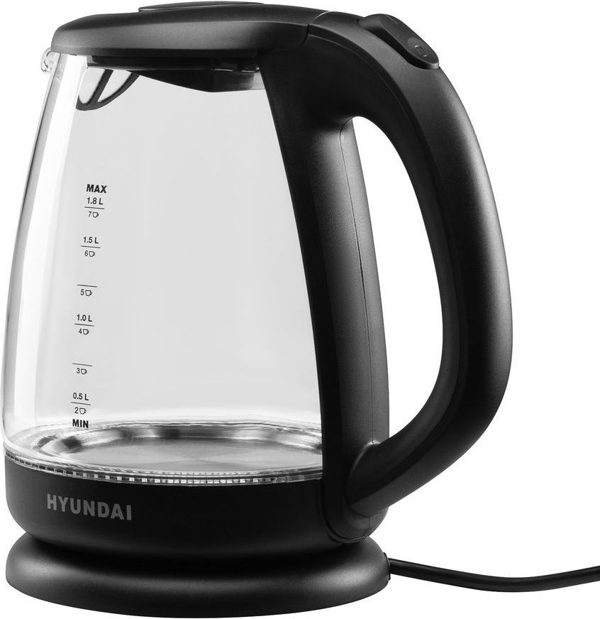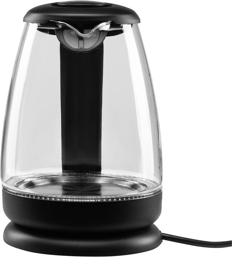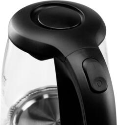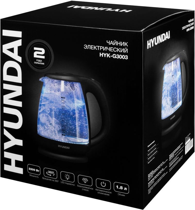 Электрический чайник, мощность 2200 Вт, объем 1.8 л, материал корпуса пластик/стекло, нагревательный элемент закрытая спираль, дополнительные функции: индикация включения, подсветка воды, подставка с вращением на 360°.