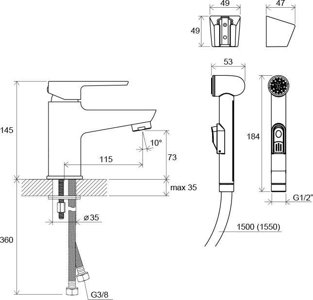 - С душевым шлангом Нет