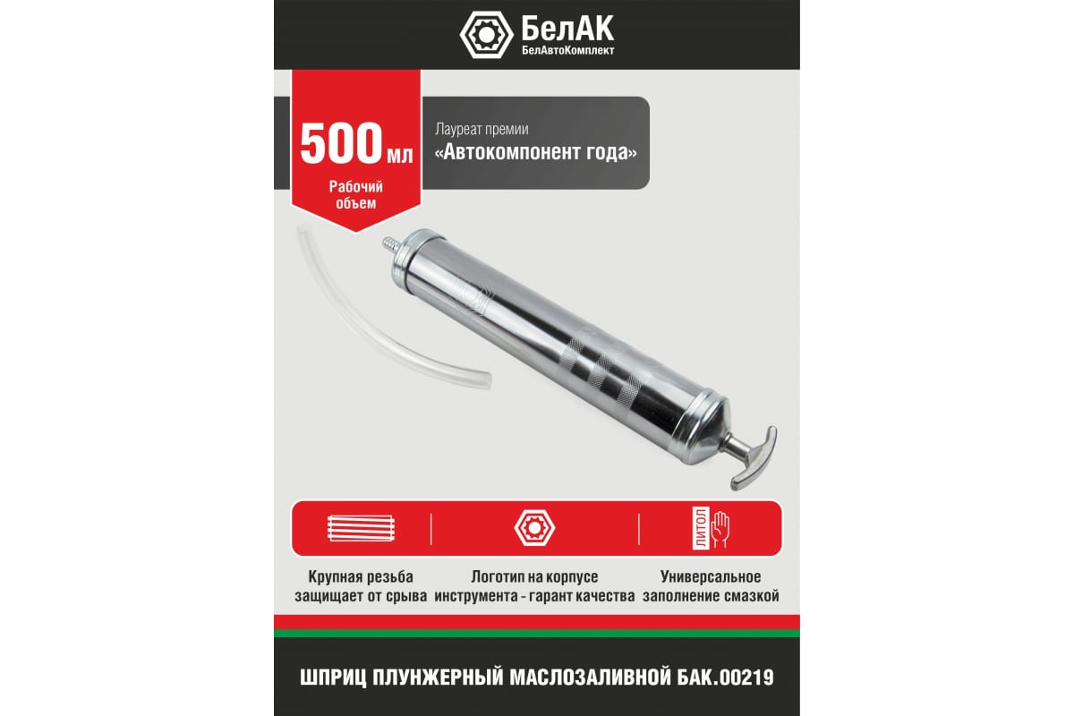 Плунжерный маслозаливной шприц БелАК 500 мл БАК.00219