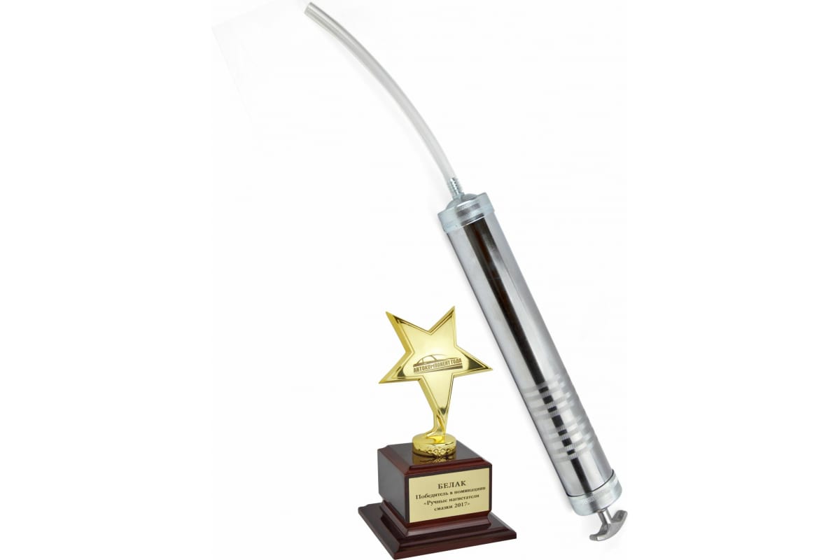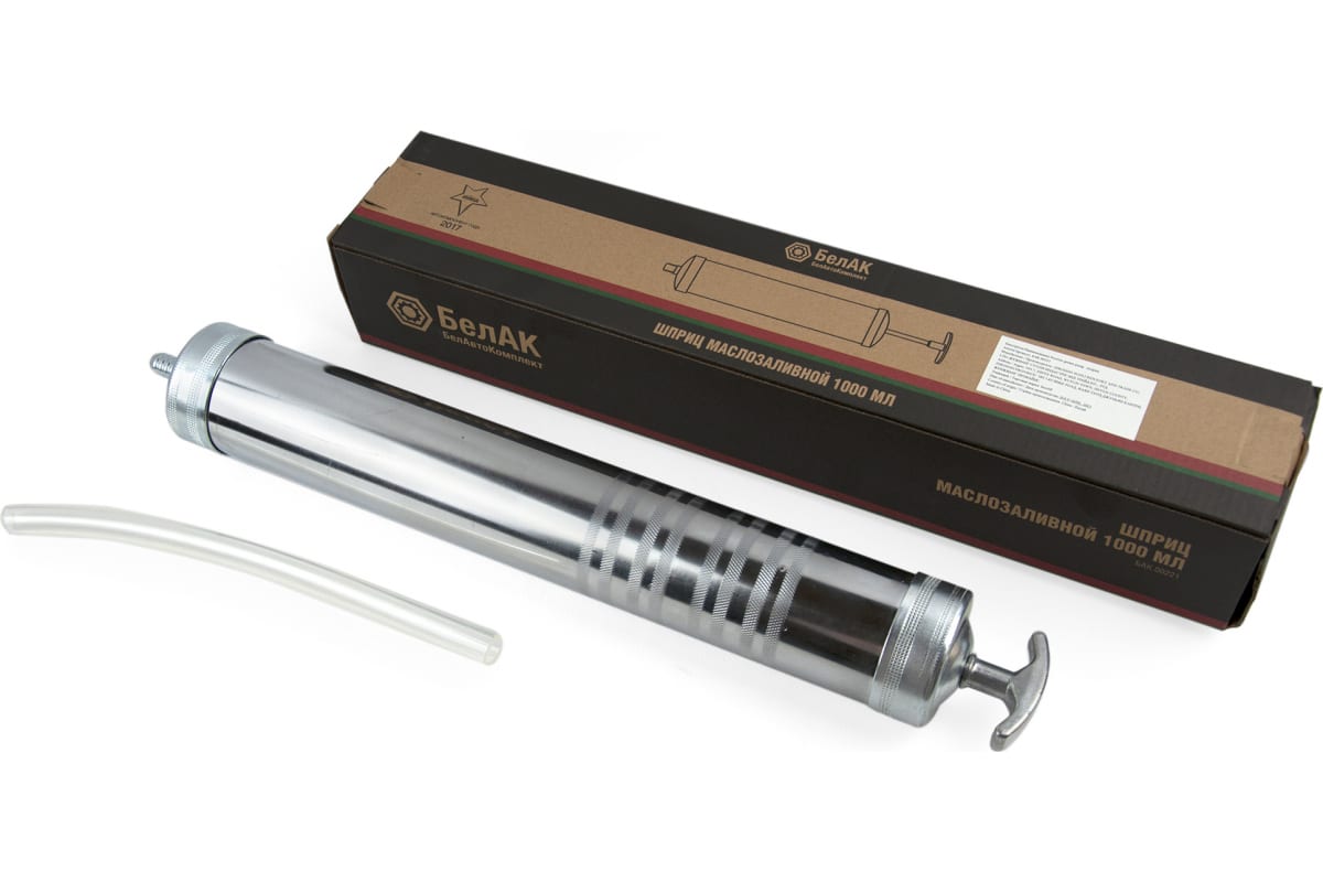 Плунжерный маслозаливной шприц БелАК 1000 мл БАК.00221 разработан российским производителем «БелАК», награждённым девятью национальными премиями «Автокомпонент года» и «Автоаксессуар года». Отдельная премия «Автокомпонент года» присуждена в номинации «Ручные нагнетатели смазки» за высокое качество и надежность выпускаемого инструмента для смазки узлов трения различных механизмов. Продукция «БелАК» соответствуют нормам сертификации ISO9001 и ЕАС.