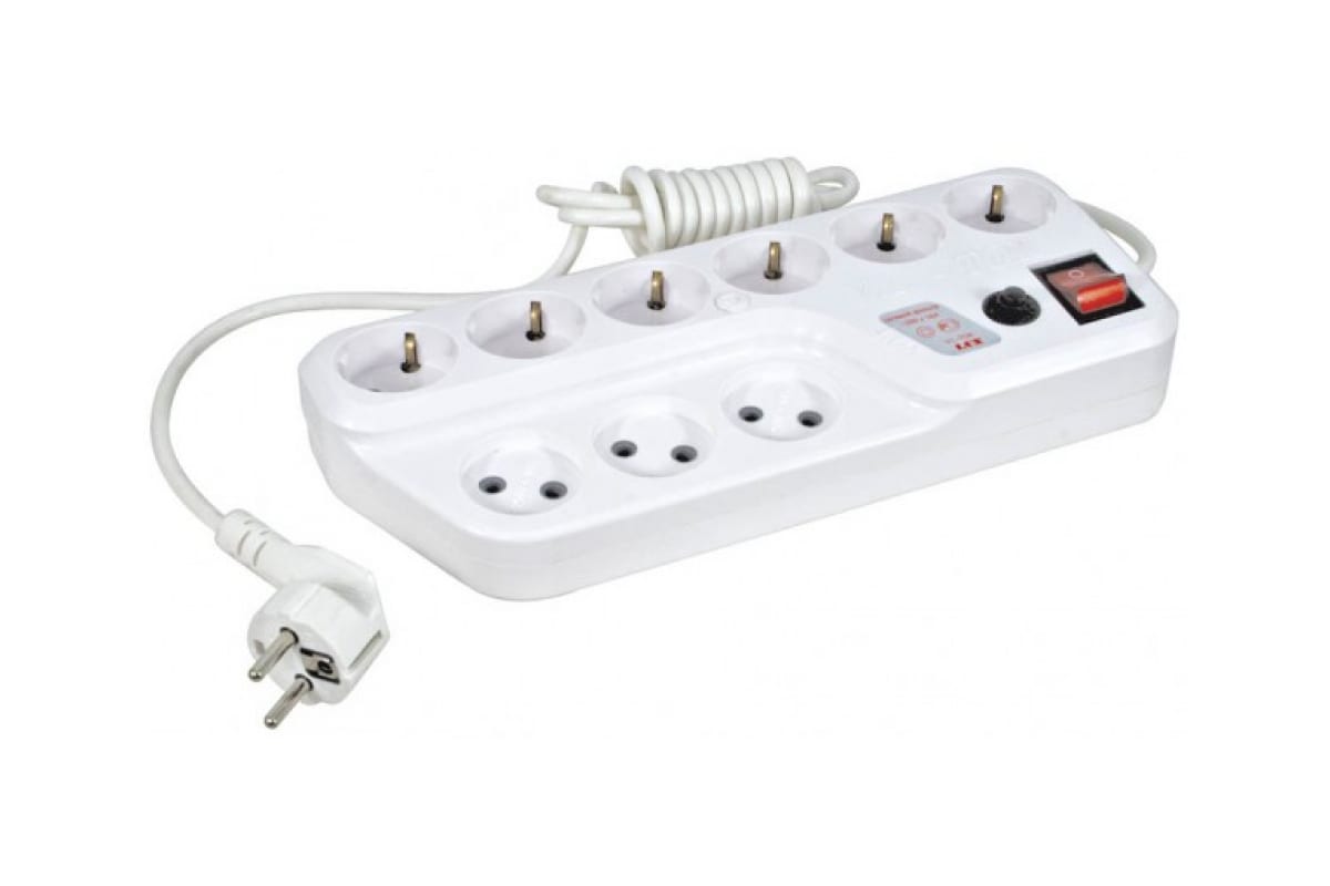 Сетевой фильтр с заземлением. V.I.-TOK СФУ9-Евк. 9 гнезд 3 метра РОС В 203413 служит для присоединения большого количества электрических приборов одновременно, а также защиты их от импульсных и высокочастотных помех. Оснащен девятью гнездами: шесть - с заземлением, три - без заземления. Корпус изготовлен из АВС-пластика, который обеспечивает прочность и надежность конструкции. Медный с ПВХ-изоляцией провод отличается долговечностью. Провод марки ПВС. Выключатель на корпусе предназначен для увеличения срок эксплуатации контактов приборов.