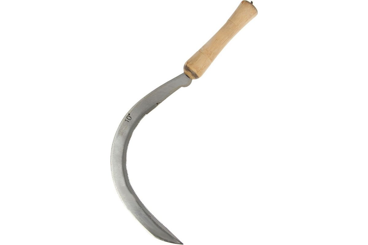 Серп СИМАЛЕНД Травник 10", толщина лезвия 2 мм, деревянная рукоять 1762420 пригодится для срезания травы на участках небольших размеров.