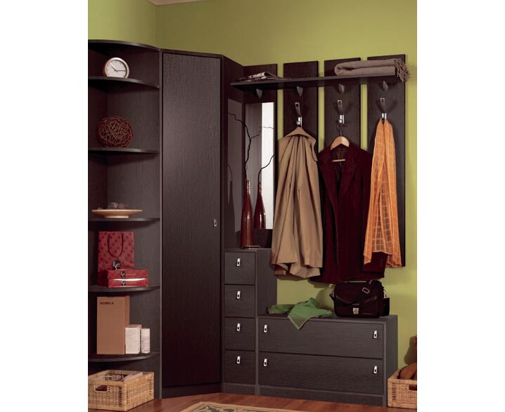 Шкаф угловой 1 со стационарной штангой. Такой шкаф позволит задействовать с пользой углы прихожей.