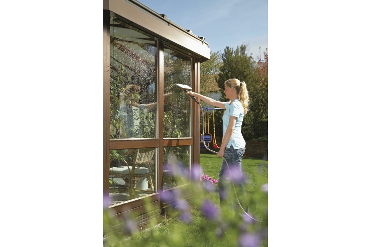 Очиститель окон с водосгоном Gardena 05564-20.000.00 оснащена соединителем для подключения к источнику воды.