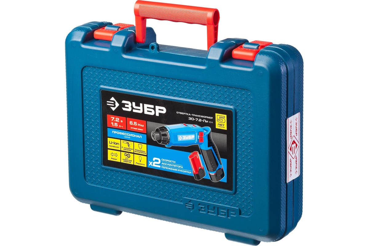 Кейс - для удобства хранения и транспортировки отвертки Зубр Трансформер-М ЗО-7.2-Ли КН.