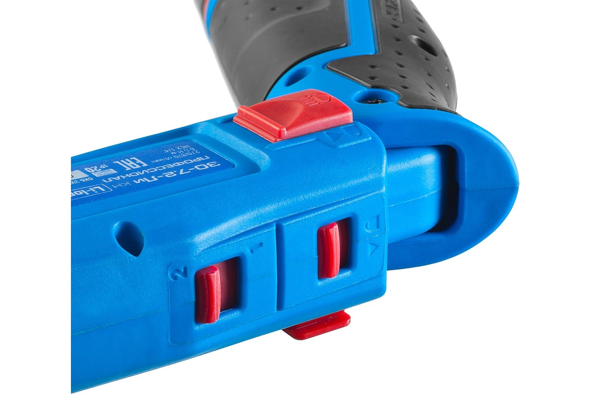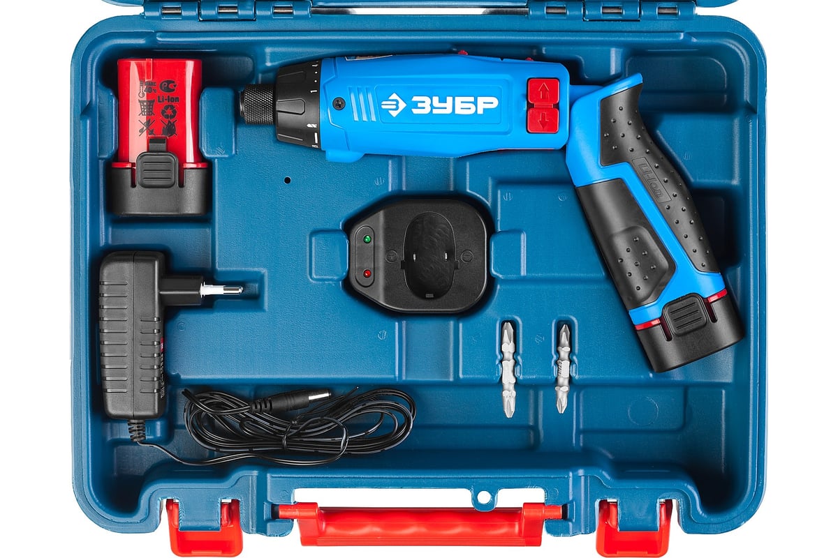 Отвертка Зубр Трансформер-М ЗО-7.2-Ли КН - аккумуляторный инструмент, обладающий всеми функциями шуруповерта. Небольшие габариты и двухпозиционная рукоятка позволяют работать в ограниченном пространстве. Благодаря блокировке шпинделя, можно доворачивать крепеж вручную. Встроенная подсветка - для работы при плохом освещении. 2 аккумулятора и зарядное устройство обеспечивают непрерывную работу. Модель поставляется в кейсе, в котором её удобно хранить и транспортировать.