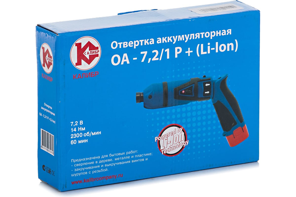 Аккумуляторная отвёртка Калибр ОА-7,2/1 Р+ 00000045943