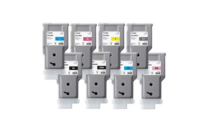 Комплект картриджей Canon PFI-206 (MBK,BK,M,C,Y,GY,PC,PM). 8 х 300. Для IPF6400S.