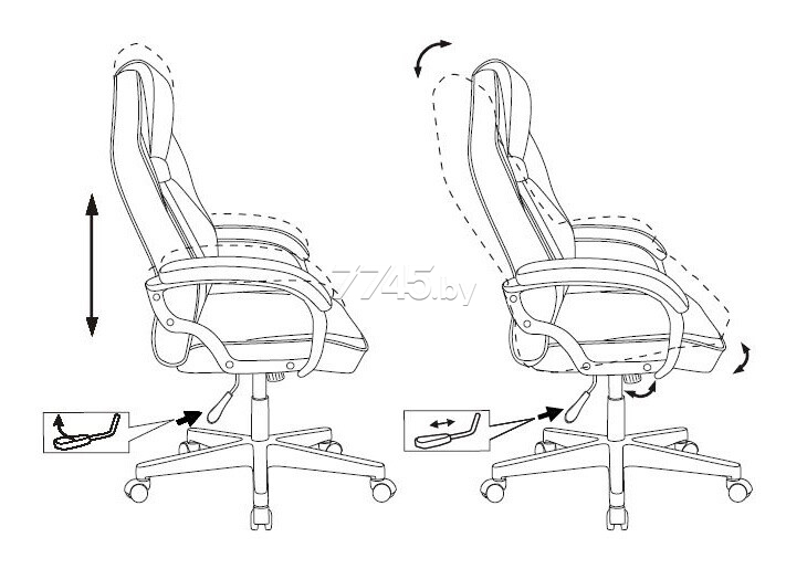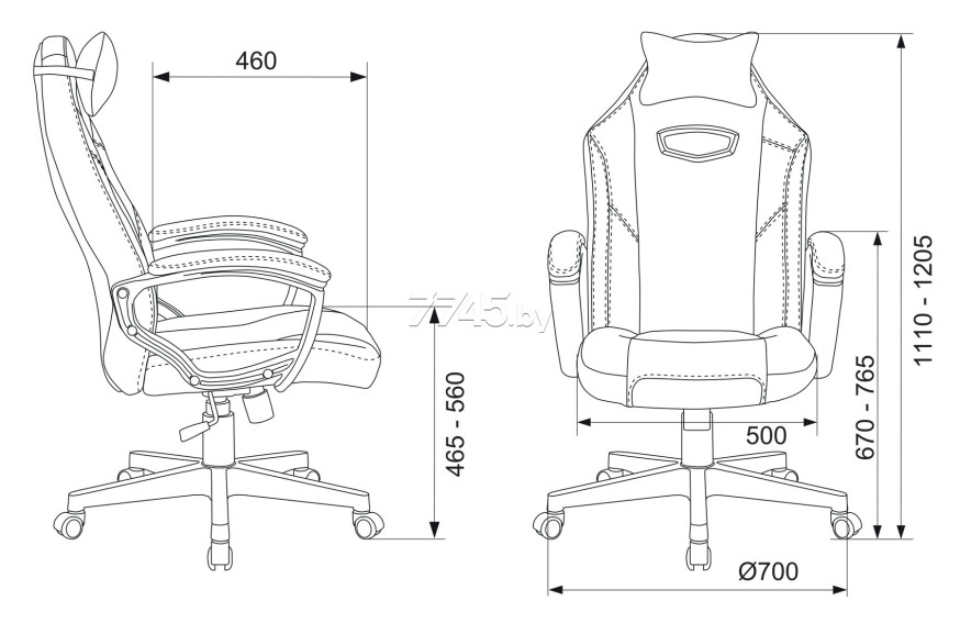 Высота подлокотника: 20,5 см. Диаметр колес: 50 мм. Диаметр крестовины: 70 см.