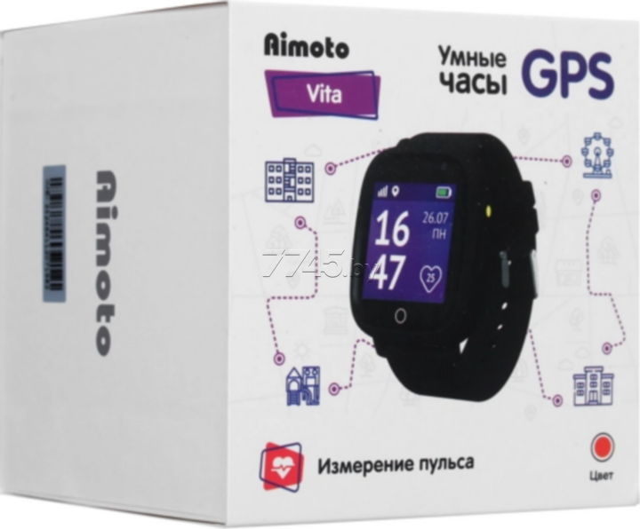 Умные часы детские Кнопка Жизни AIMOTO Vita – это часы, которые могут измерять температуру тела и пульс. Часы принимают голосовые звонки, а также текстовые, голосовые и фото-сообщения. Устройство оснащено датчиками пульса и температуры тела. Модель определяет местонахождение ребенка, позволяют просматривать историю его перемещений, устанавливать границы безопасной зоны для прогулок, блокировать звонки с незнакомых номеров. По удаленной команде часы делают фото или перезванивают на заданный номер телефона, чтобы родители могли увидеть или послушать, что происходит рядом с ребенком. С одного телефона можно отслеживать несколько умных часов. Часы сохраняют работоспособность, если ребенок попадет под дождь, забудет снять часы в душе или уронит в ванну. Класс защиты IP67 обеспечивает водонепроницаемость при кратковременном погружении под воду на глубину до 1 метра. С часами AIMOTO вы будете спокойны за своего ребенка. Вибро режим отсутствует. Объем оперативной памяти 32 МB/ объем встроенной памяти 32 МВ.