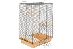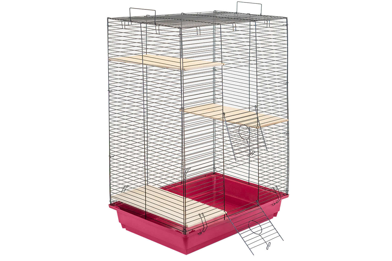 Клетка для грызунов: крыс, шиншилл, дегу металлическая на пластиковом поддоне. Разборная конструкция - 4 стенки и крыша. Дверца в передней (длинной) стенке. В комплекте 3 этажа из фанеры, 2 ручки для переноски. Прутья стенок расположены горизонтально. Расстояние между прутьями 13,5мм.