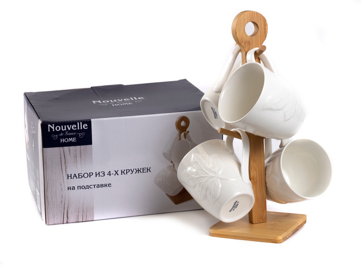 НАБОР КРУЖЕК фарфоровых 4 шт. 380 мл на бамбуковой подставке (арт. 2632007, код 074102) 101522