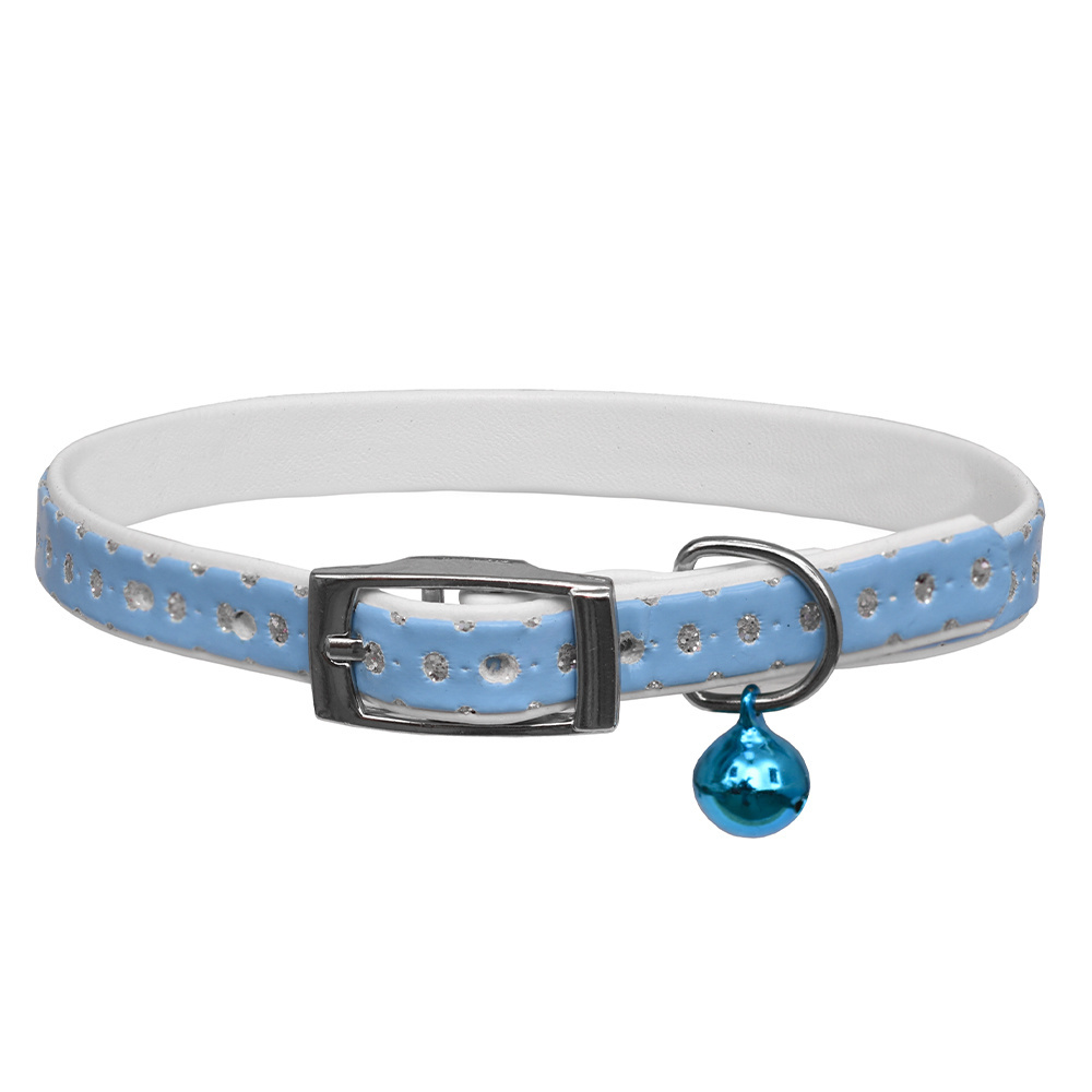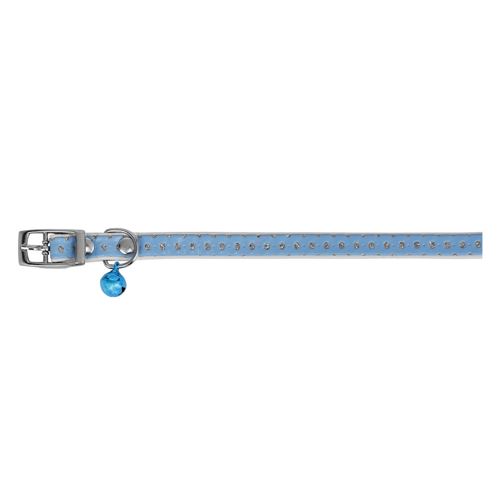 Ошейник "Дивелла" двойной, с блестками и бубенчиком, для кошек, голубой