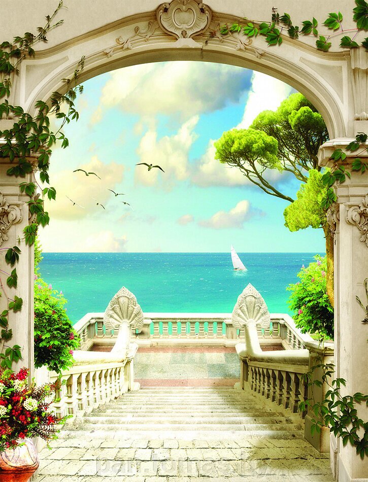 - Тематика изображения балкон, терраса, веранда, вид из окна на море
