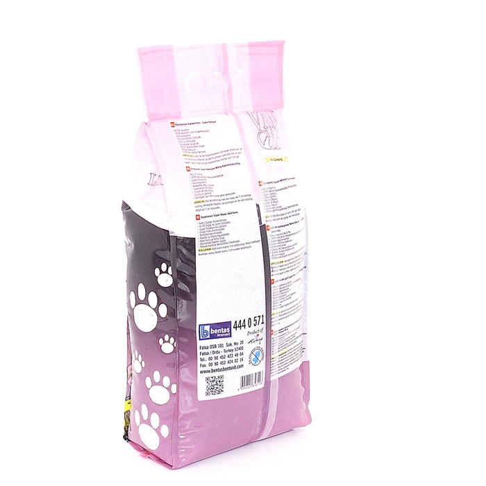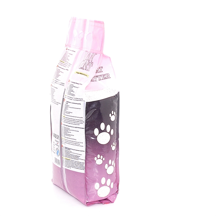 Гранулы белоснежного бентонита размером 0.6мм-2.25мм образуют круглые, как снежки, комочки, которые легко удалить из лотка.