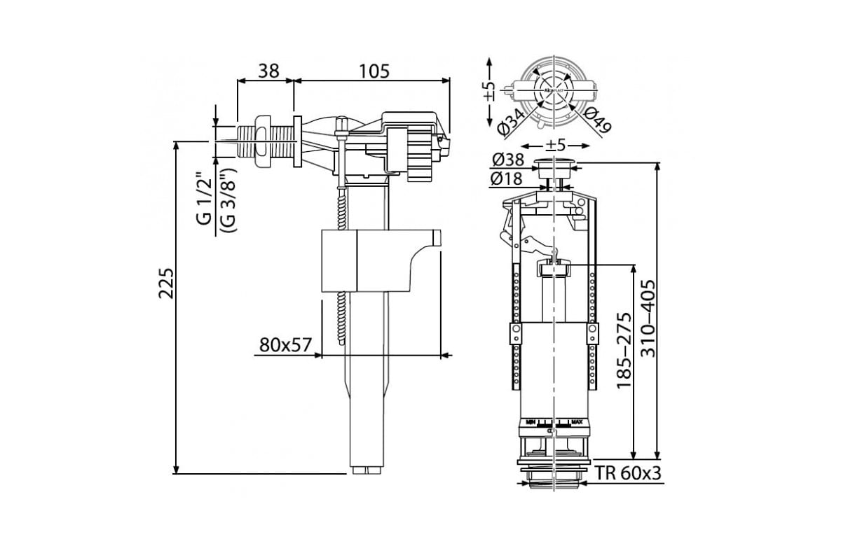 Дополнительные характеристики Выпускного комплекта Alca Plast SA2000K 3/8 CHROM впускной механизм А16 1/2 одинарный 00022606