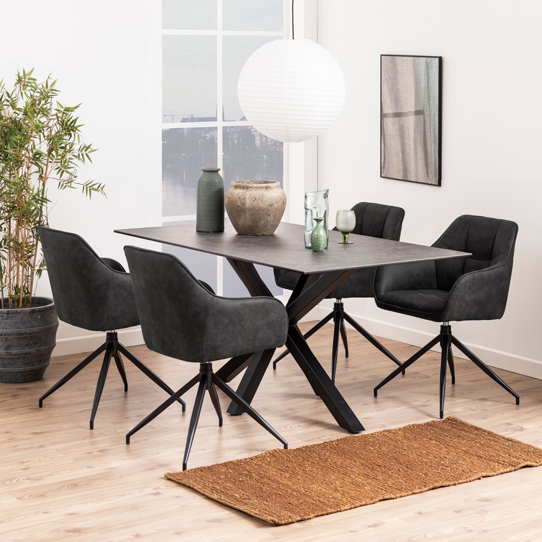 Обеденный стол Actona Miriam, черный, 1600 мм x 900 мм x 755 мм