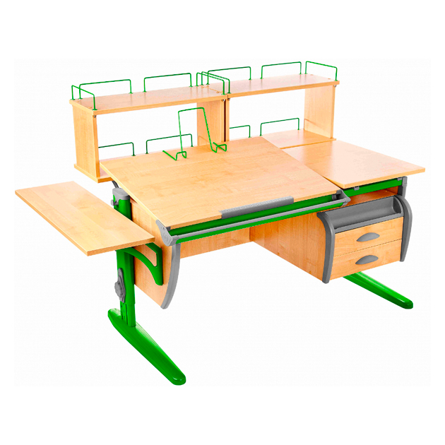 - Модель СУТ 17-05Д2 (парта 120 см+две двухъярусные задние приставки+боковая приставка+подвесная тумба) ЛДСП Клен Зеленый в комплекте Боковая полка Подвесная тумба