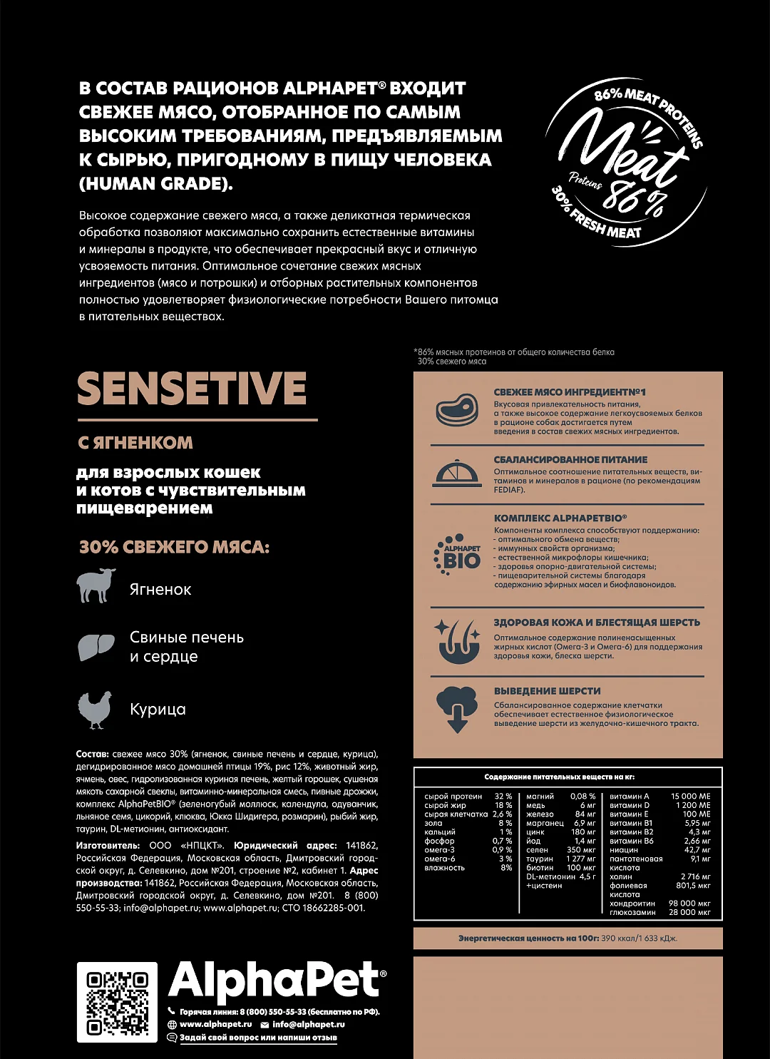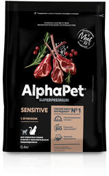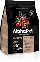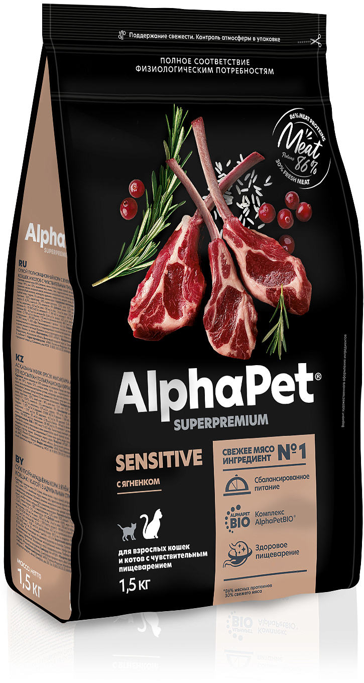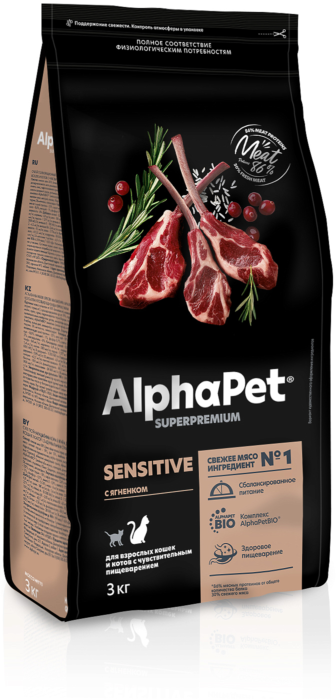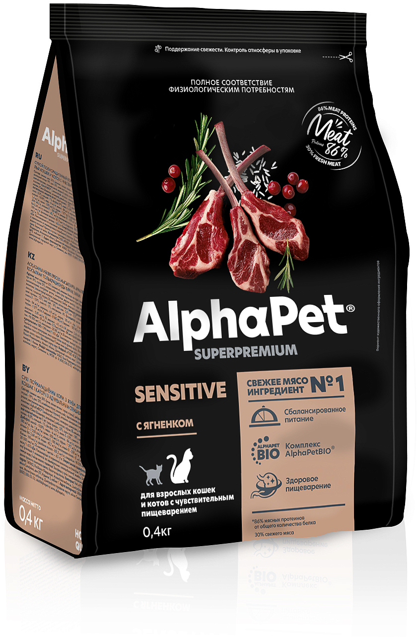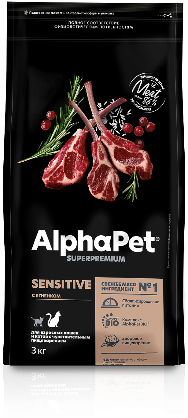 Сухой корм AlphaPet Superpremium полнорационный с ягненком для взрослых кошек и котов с чувствительным пищеварением