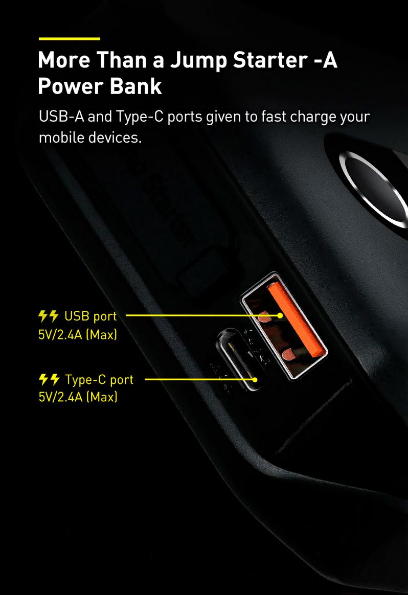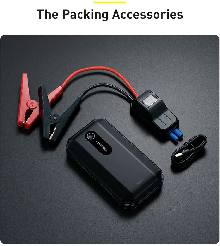 • В комплекте провод для запуска двигателя, документация, зарядный кабель (Type-A — Type-C)