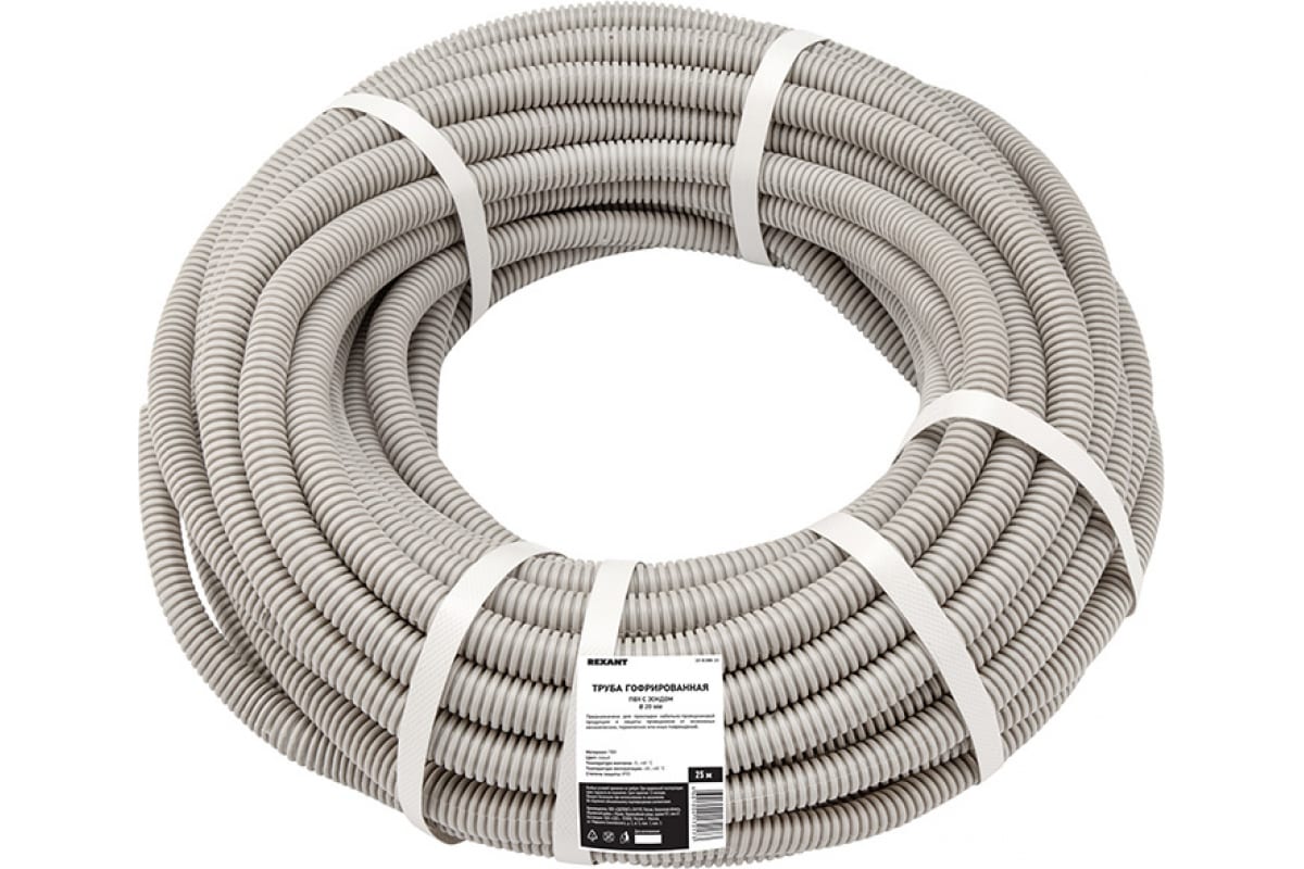 Гофрированная труба из ПВХ REXANT с зондом d 20 мм серая 25 м 28-0200-25