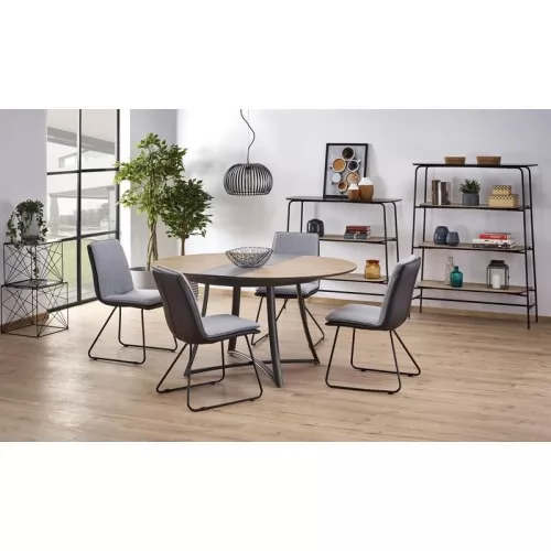 Стол MORETTI — это предложение для столовых и кухонь, оформленных преимущественно в индустриальном стиле. Его круглая столешница выполнена в цвете золотистого дуба, имитирующем натуральное дерево и контрастирующем с антрацитовой рамой интересной формы.