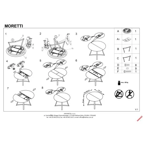 Стол обеденный HALMAR MORETTI раскладной, дуб натуральный/че..