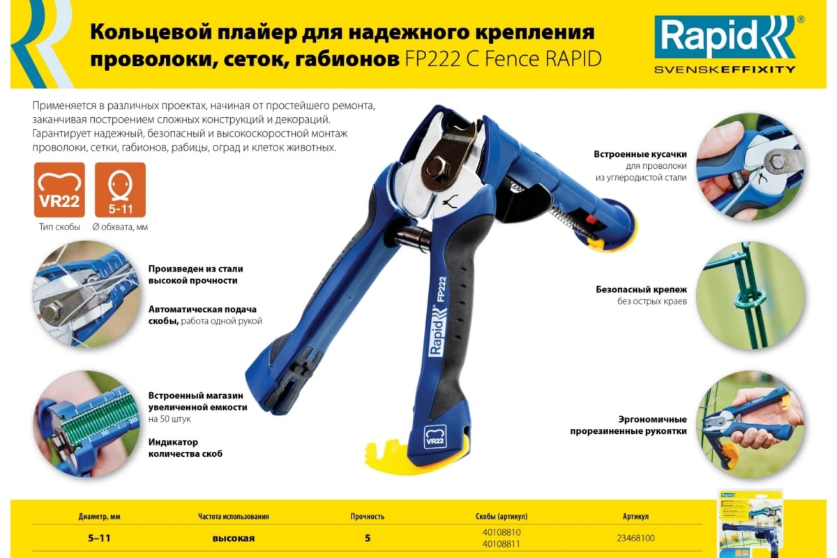 Кольцевые скобы для FP222 RAPID VR22 1600 шт. 40108810 изготовлены из эластичной проволоки, что позволяет легко удалить их при необходимости. Применяются для крепления проволоки с помощью кольцевого плайера FP222 C Fence RAPID.