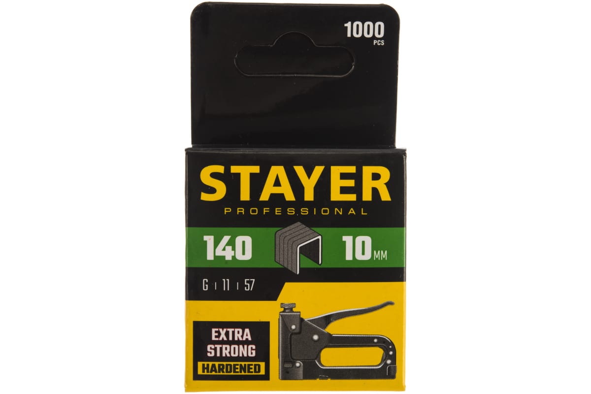 Скобы зеленые закаленные 1000 шт. для степлеров (10 мм; тип 140) "PROFI" STAYER 31610-10