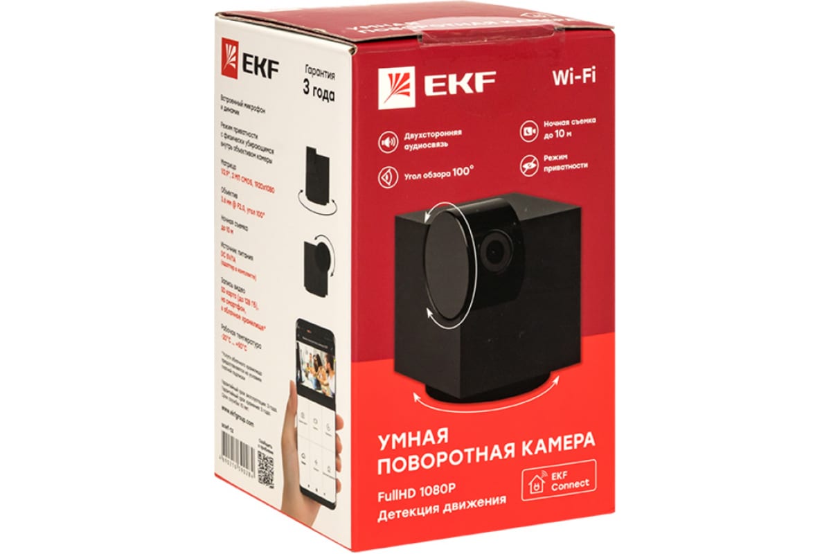Умная поворотная камера EKF Connect scwf-tz позволяет легко организовать видеонаблюдение за домом или квартирой, а также присматривать за детьми или питомцами. Можно в любой момент посмотреть картинку с камеры в приложении EKF Connect для Android и iOS. Все камеры поддерживают запись видео на карту памяти или в облако. Также есть функция определения движения с отправкой уведомления и фотографии в приложение.