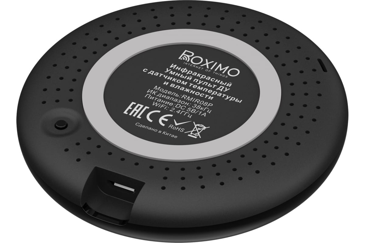 Умный пульт ДУ Roximo с датчиком температуры и влажности RMIR08P - это одно из устройств экосистемы умного дома Roximo. Устройством можно управлять с помощью специального мобильного приложения, добавляя в настройки пульты к различной бытовой технике: телевизорам, аудио-видеосистемам, кондиционерам, вентиляторам и любым другим устройствами, имеющим ИК-управление.