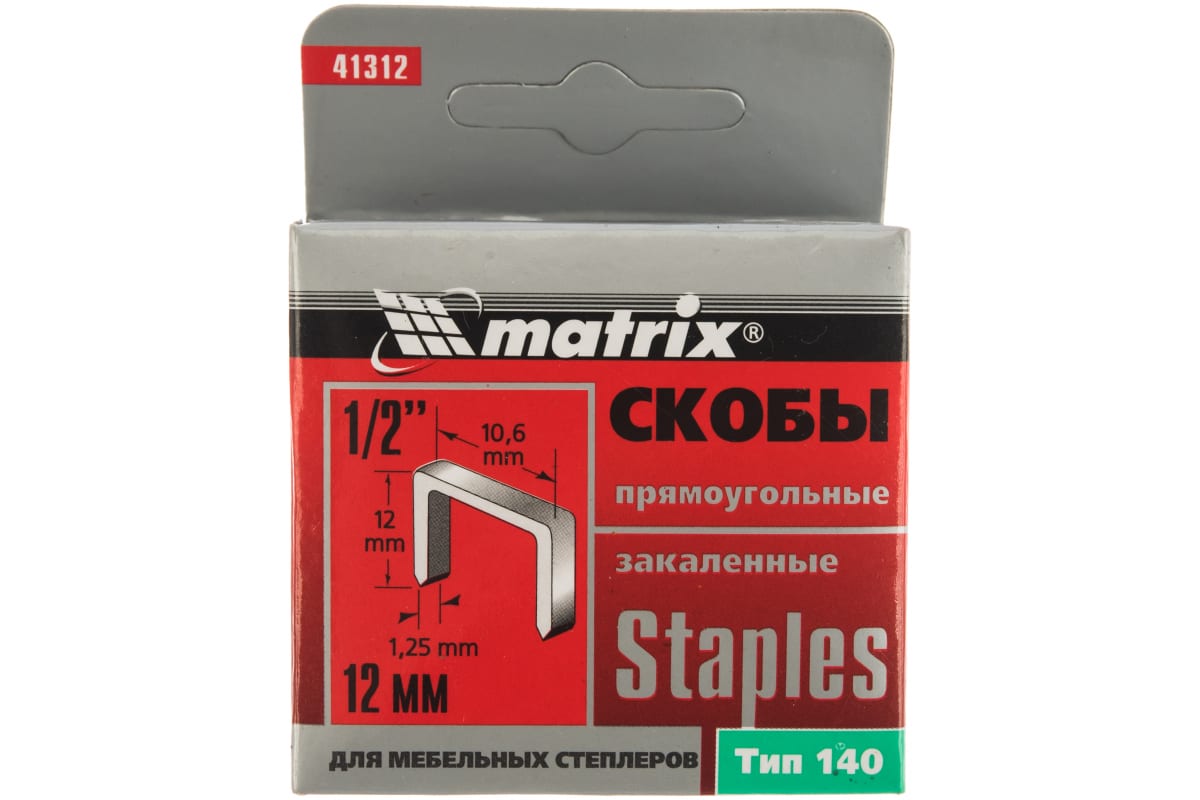 Скобы закаленные 1000 шт. для мебельного степлера (12 мм; тип 140) MASTER MATRIX 41312