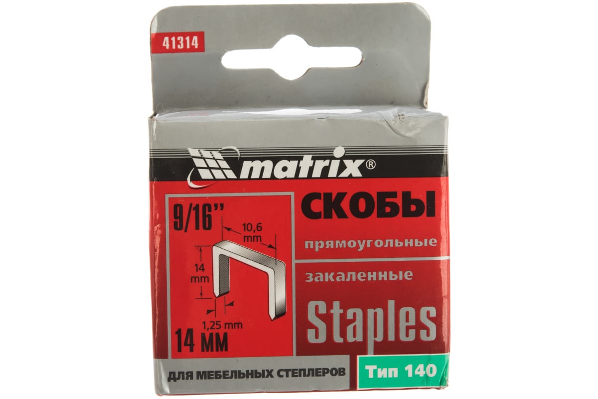 Скобы закаленные 1000 шт. для мебельного степлера (14 мм; тип 140) MASTER MATRIX 41314