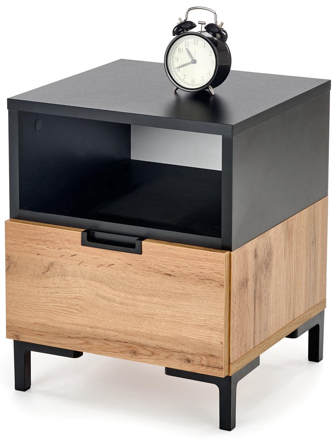 Ночной столик Halmar Silvia, черный/дубовый, 40 x 40 x 52 см