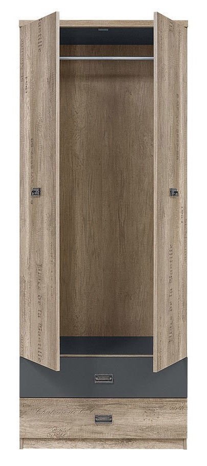 Гардероб Black Red White Malcolm, серый/дубовый, 80 см x 57 см x 205.5 см