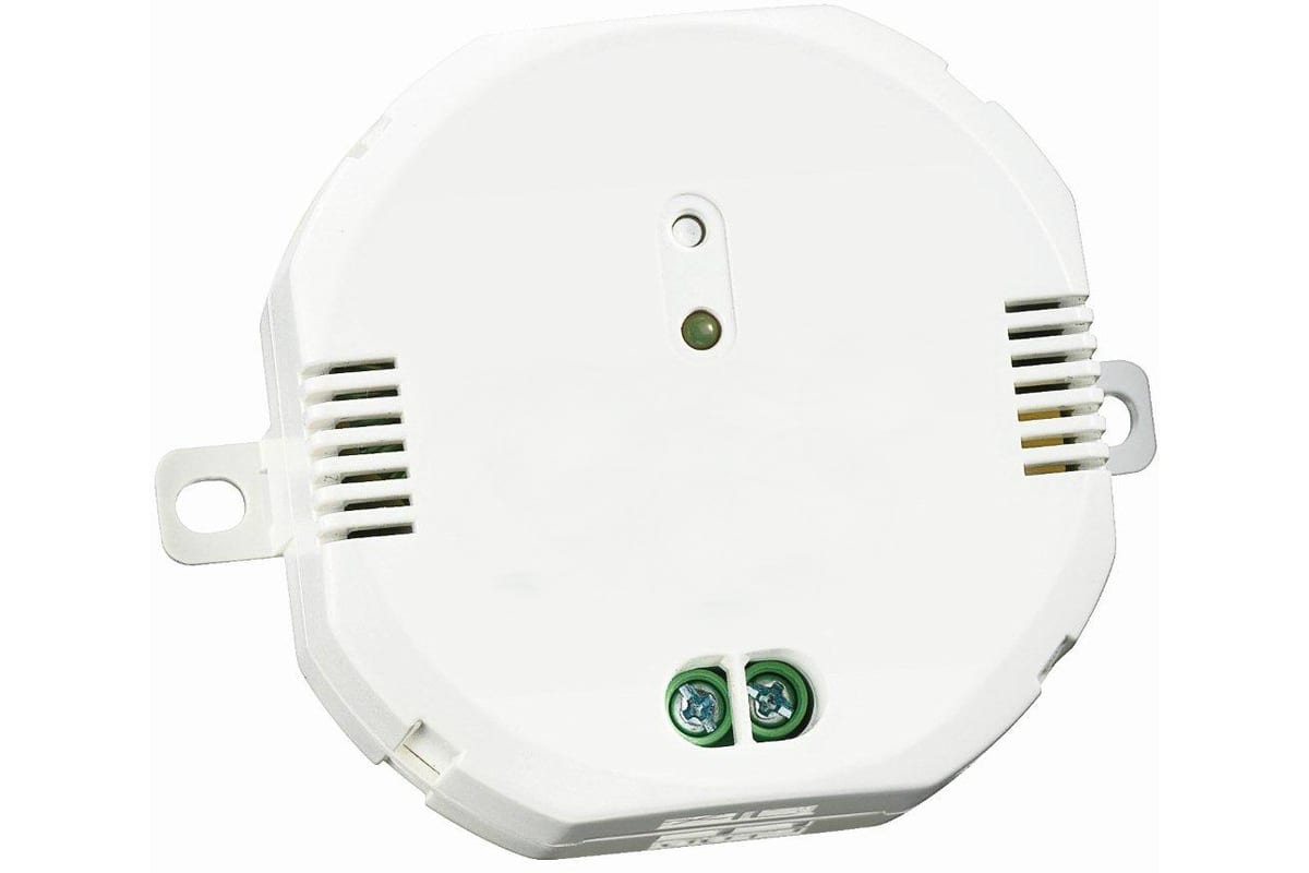 Встраиваемый радио-выключатель с диммером для галогеновых ламп ACM-250 CoCo 71047 2 необходим для управления освещенностью в помещении. Устанавливается в монтажную коробку вместо обычного выключателя и дает возможность управлять включением/ выключением света, а также яркостью свечения. Функция диммера позволяет выбрать комфортный уровень освещенности в зависимости от обстановки. Управление осуществляется с пульта, беспроводного настенного выключателя или беспроводного датчика движения СОСО. Корпус прибора изготовлен из пластика. Дальность действия - до 30 метров в помещении, до 70 метров - вне помещения.