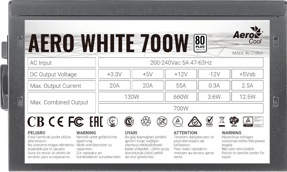 Блок питания AeroCool Aero White 700W 700 Вт, 120 мм, 10 - 25 дБ