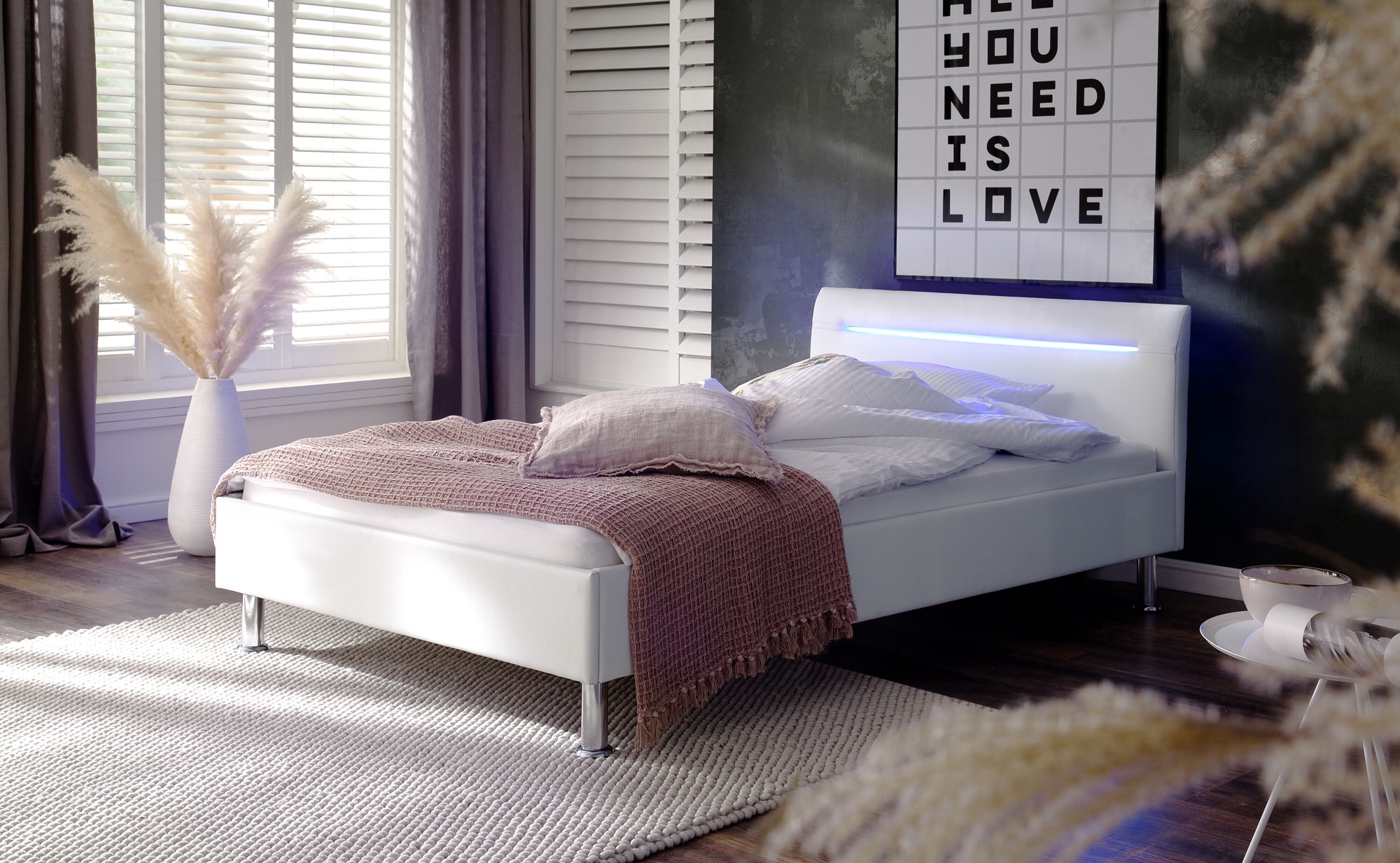 • Дополнительная информация Высота изножья: 35 см. В изголовье кровати имеется светодиодная подсветка. Металлические ножки