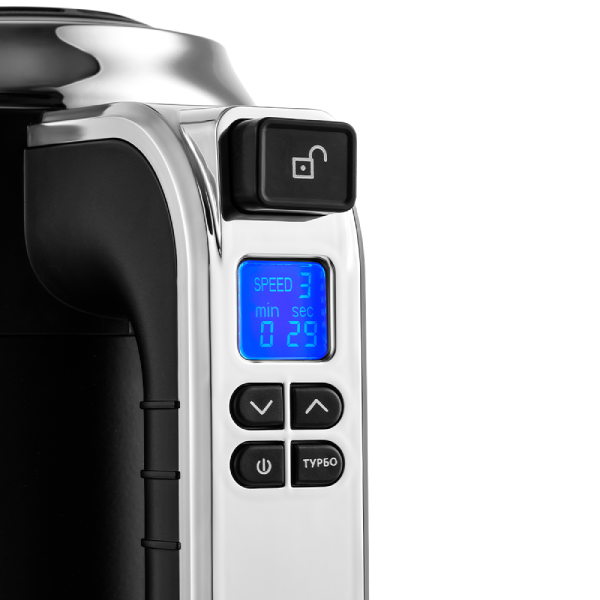 ОсобенностиУ миксера на ручке расположен дисплей, на котором видно скорость и время работы, что очень удобно во время работы с ним. Прибор оснащён 6 скоростями, благодаря которым вы сможете выбрать подходящую скорость для взбивания или смешивания ингредиентов