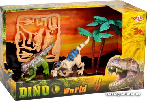 - Комплектация 2 динозавра, детали скелета динозавра, пальма