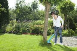 Электрический триммер оснащен регулируемым удлинителем лески. Благодаря этому механизму ударной подачи леска триммера удлиняется только тогда, когда этого захочет пользователь.