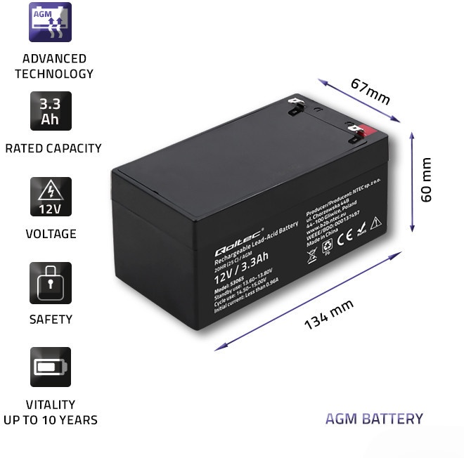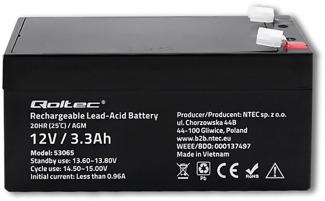 UPS аккумулятор Qoltec ATG 53065, 3.3 Ач