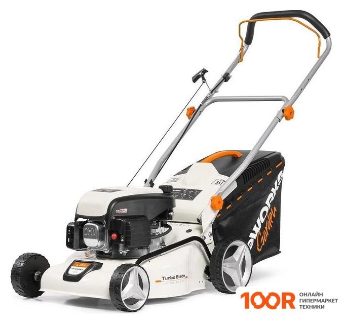 - Комплектация - Газонокосилка - Травосборник - Турбо-нож - Свечной ключ - Инструкция.