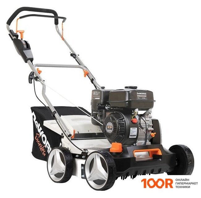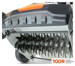 Комплектация- корпус скарификатора в сборе,- нижняя рукоятка, - верхняя рукоятка, - крепежные элементы и болты, - стальной каркас травосборника, - крепеж для кабеля, - вал 16 ножей, - игольчатый вал, - свечной ключ, - коробка.