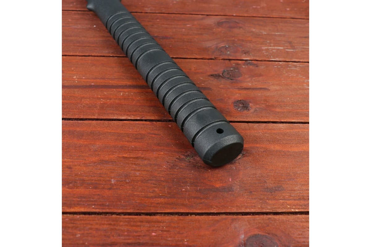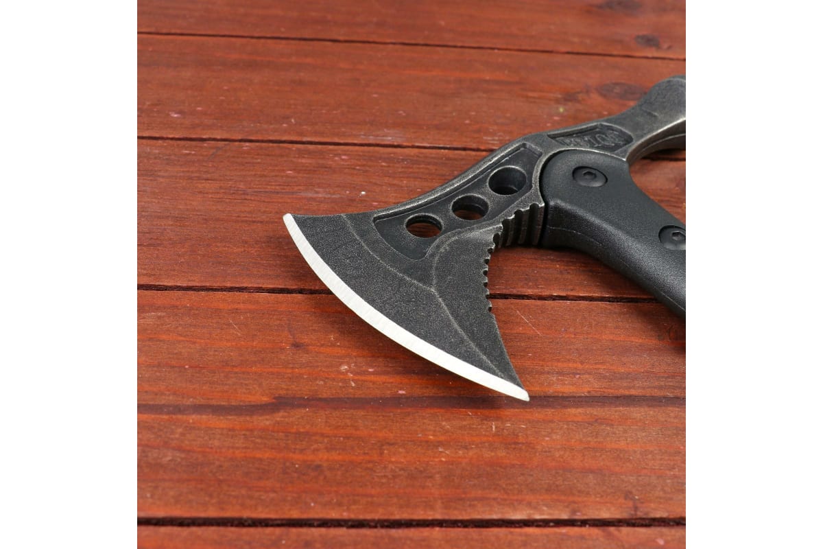 Рабочая часть обладает многозадачностью, так как на одной стороне имеется топор, а на другой молоток.