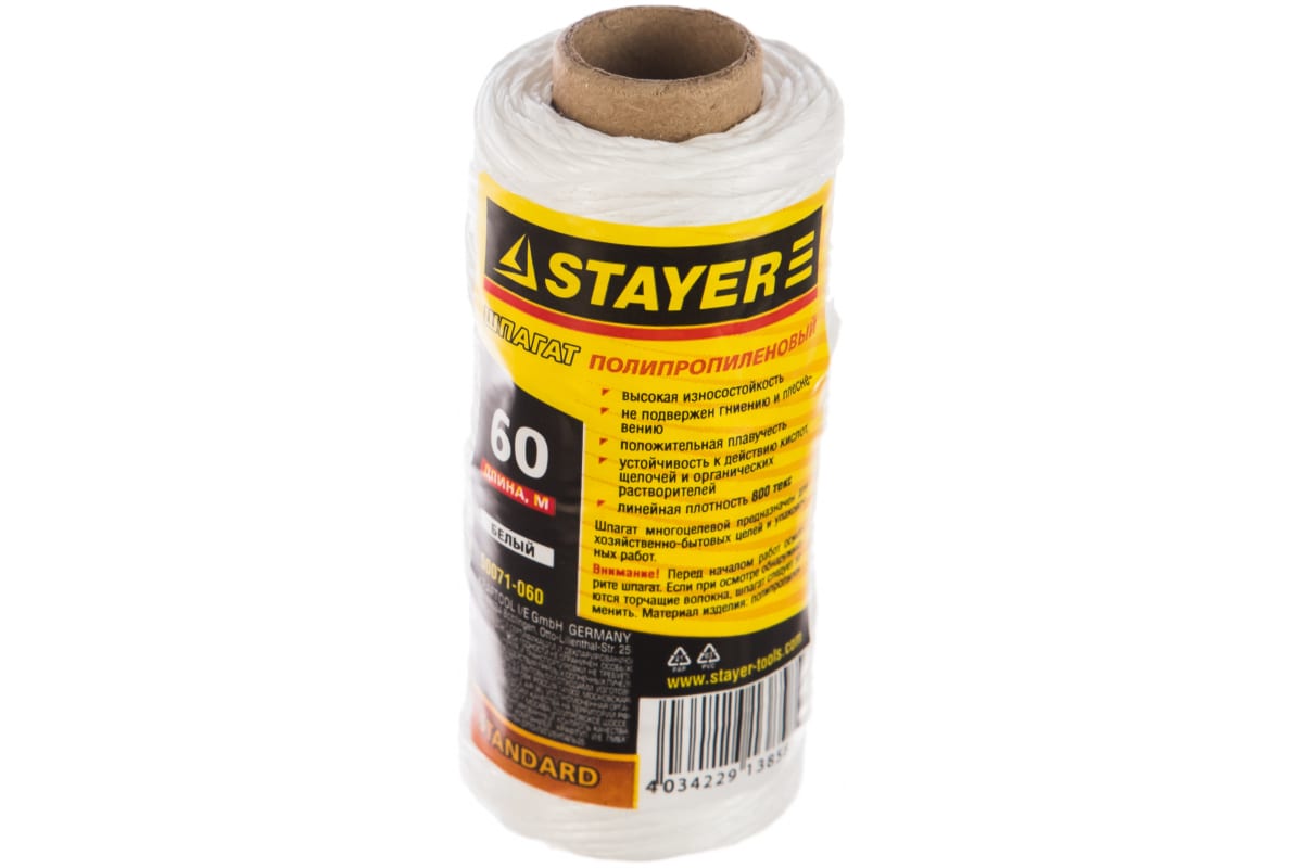 Полипропиленовый шпагат 60 м белый STAYER 50071-060