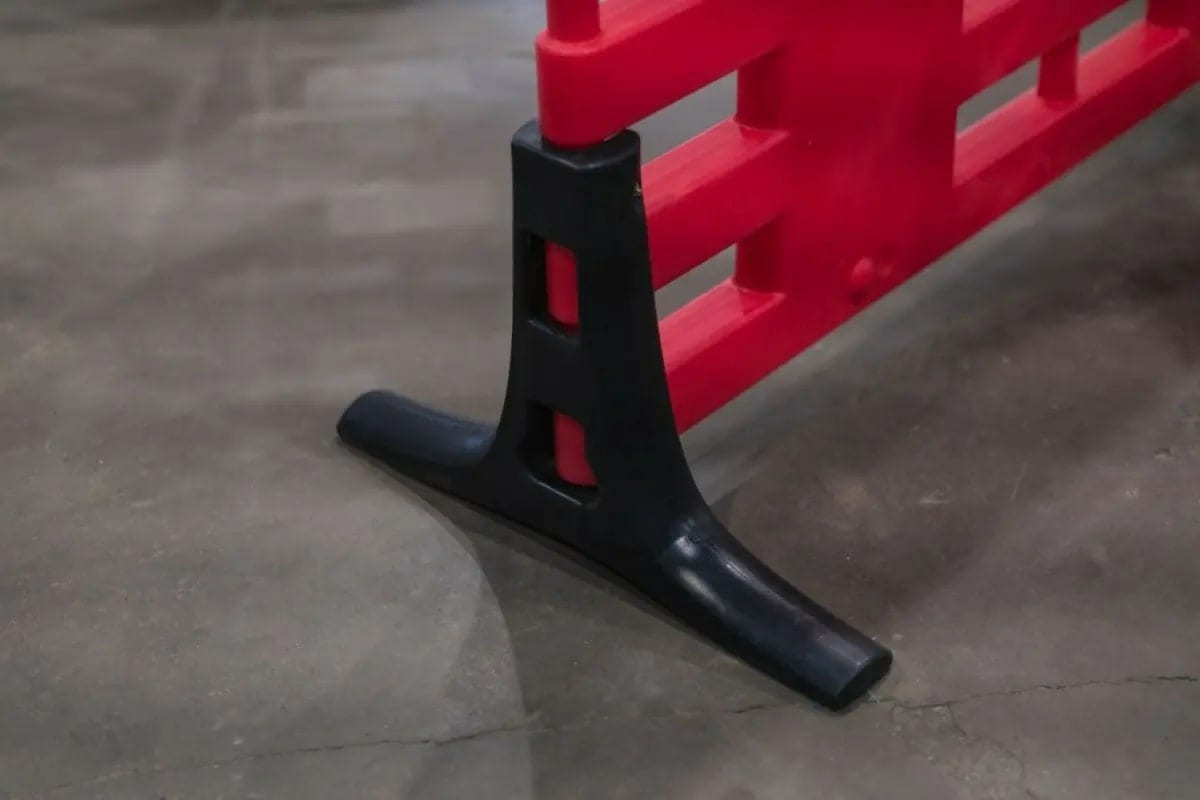 Треугольная опора Экопром ARGO черный 330.0002.899.1 предназначена для придания устойчивости одиночного мобильного барьерного ограждения «ARGO». Шип в опоре вставляется в нижнее отверстие ограждения, затем опора фиксируется относительно ограждения болтовым соединением. Сверху опора охватывает стойку ограждения.