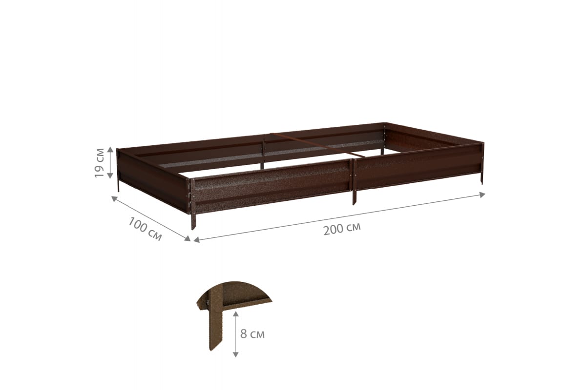 Готовая грядка Delta-Park GM100-2 1х2 м, коричневая, 19 см 3001038_4 – отличное решение для организации аккуратных грядок на дачном или огородном участке. Благодаря универсальным соединениям "в длину" и "в угол" бортики взаимозаменяемы. Конструкция отличается простотой сборки. В комплекте имеется необходимый крепеж. Антикоррозийное покрытие продлевает срок службы изделия.