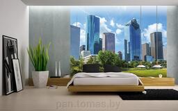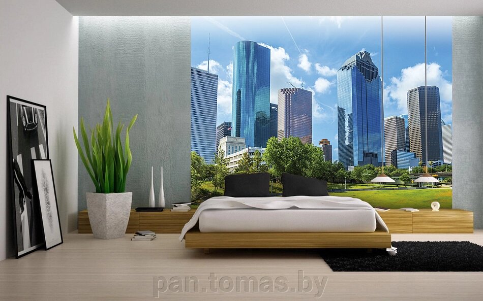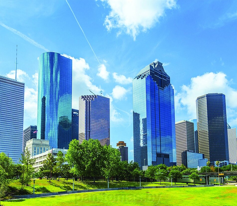 - Рисунок город, панорама, небо, облака, мегаполис, здание, США, лето, архитектура